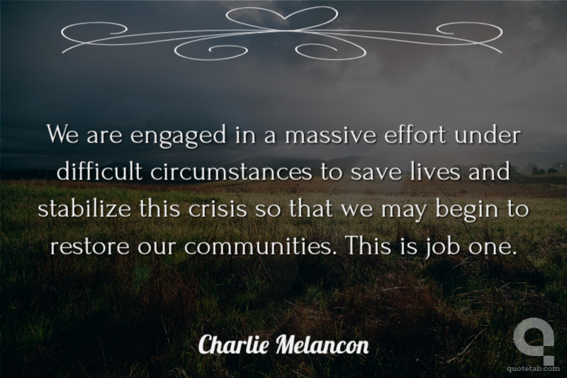 We are engaged in a massive effort under difficult circumstances to save lives and stabilize this crisis so that we may begin to restore our communities. This is job one.