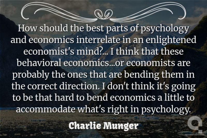 How should the best parts of psychology and economics interrelate in an enlightened economist's mind?... I think that these behavioral economics...or economists are probably the ones that are bending them in the correct direction. I don't think it's going to be that hard to bend economics a little to accommodate what's right in psychology.