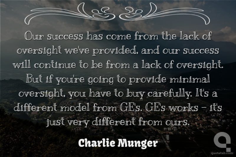 Our success has come from the lack of oversight we've provided, and our success will continue to be from a lack of oversight. But if you're going to provide minimal oversight, you have to buy carefully. It's a different model from GE's. GE's works - it's just very different from ours.