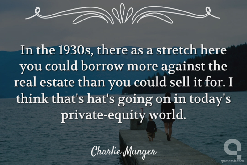 In the 1930s, there as a stretch here you could borrow more against the real estate than you could sell it for. I think that's hat's going on in today's private-equity world.