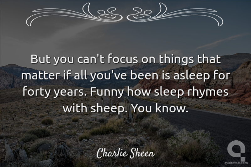 But you can't focus on things that matter if all you've been is asleep for forty years. Funny how sleep rhymes with sheep. You know.