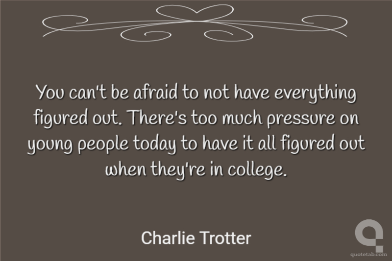 You can't be afraid to not have everything figured out. There's too much pressure on young people today to have it all figured out when they're in college.