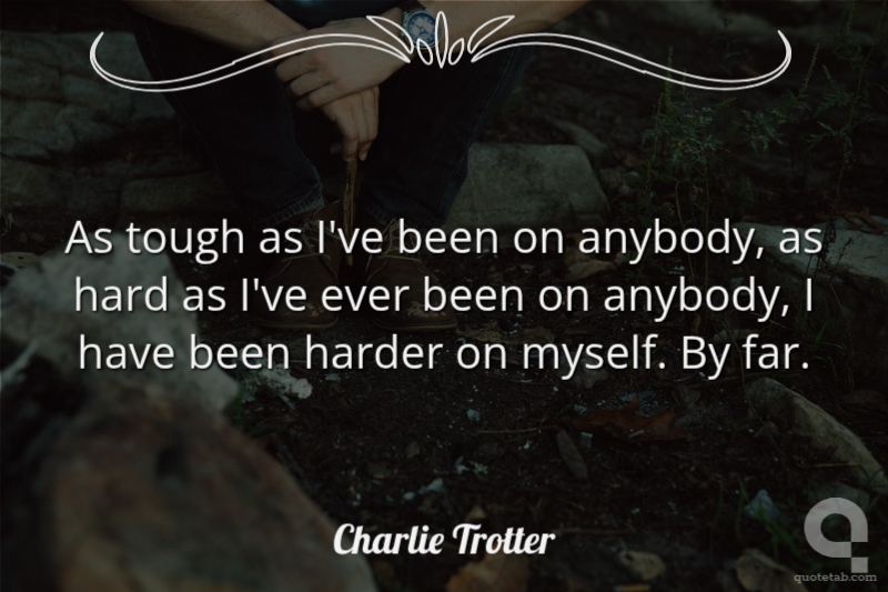 As tough as I've been on anybody, as hard as I've ever been on anybody, I have been harder on myself. By far.