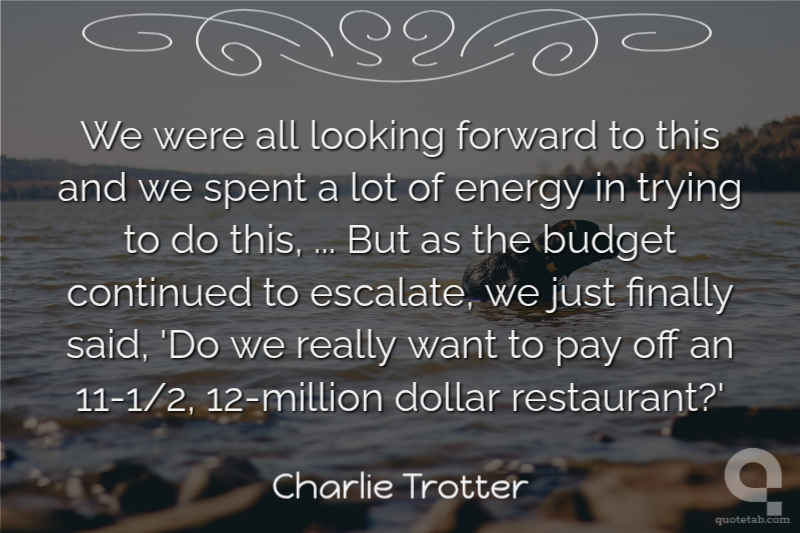 We were all looking forward to this and we spent a lot of energy in trying to do this, ... But as the budget continued to escalate, we just finally said, 'Do we really want to pay off an 11-1/2, 12-million dollar restaurant?'