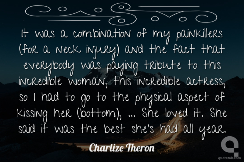 It was a combination of my painkillers (for a neck injury) and the fact that everybody was paying tribute to this incredible woman, this incredible actress, so I had to go to the physical aspect of kissing her (bottom), ... She loved it. She said it was the best she's had all year.