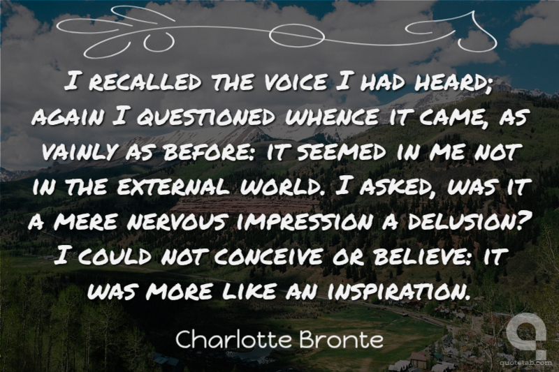 I recalled the voice I had heard; again I questioned whence it came, as vainly as before: it seemed in me not in the external world. I asked, was it a mere nervous impression a delusion? I could not conceive or believe: it was more like an inspiration.