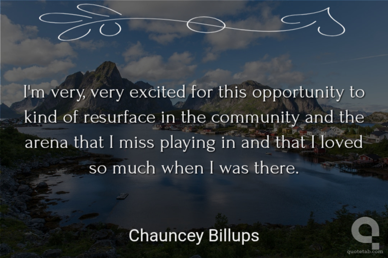 I'm very, very excited for this opportunity to kind of resurface in the community and the arena that I miss playing in and that I loved so much when I was there.