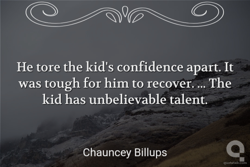 He tore the kid's confidence apart. It was tough for him to recover. ... The kid has unbelievable talent.
