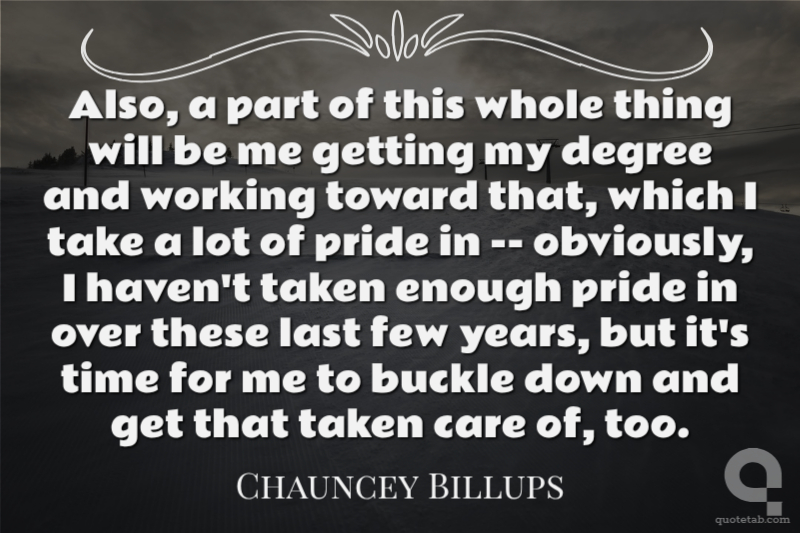 Also, a part of this whole thing will be me getting my degree and working toward that, which I take a lot of pride in -- obviously, I haven't taken enough pride in over these last few years, but it's time for me to buckle down and get that taken care of, too.