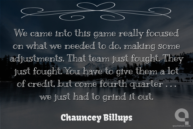 We came into this game really focused on what we needed to do, making some adjustments. That team just fought. They just fought. You have to give them a lot of credit, but come fourth quarter . . . we just had to grind it out.