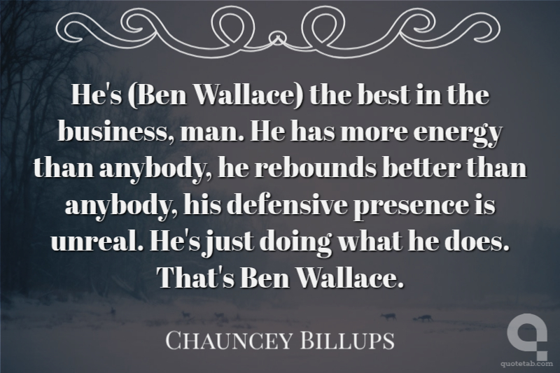He's (Ben Wallace) the best in the business, man. He has more energy than anybody, he rebounds better than anybody, his defensive presence is unreal. He's just doing what he does. That's Ben Wallace.