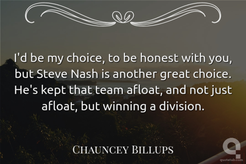 I'd be my choice, to be honest with you, but Steve Nash is another great choice. He's kept that team afloat, and not just afloat, but winning a division.