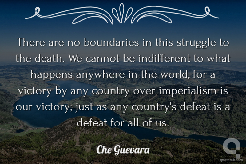 There are no boundaries in this struggle to the death. We cannot be indifferent to what happens anywhere in the world, for a victory by any country over imperialism is our victory; just as any country's defeat is a defeat for all of us.