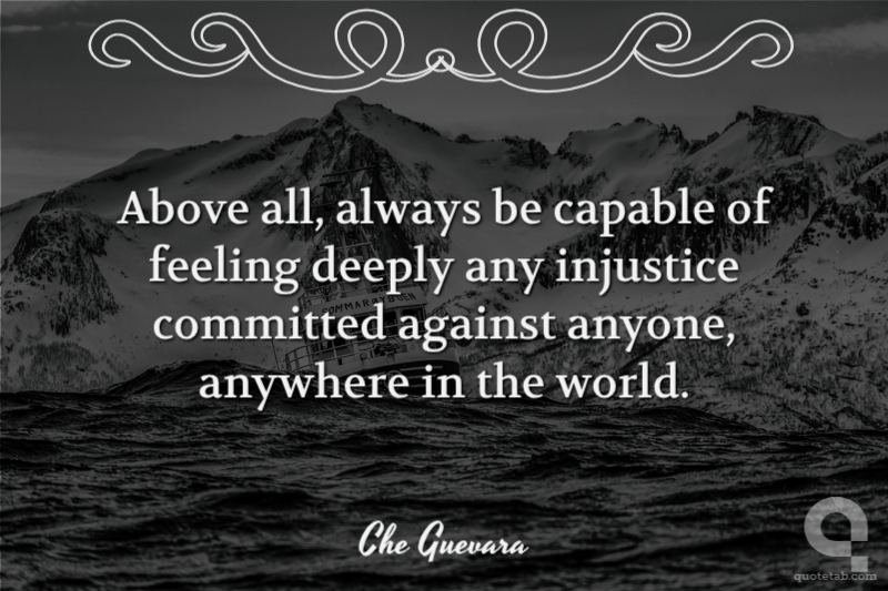 Above all, always be capable of feeling deeply any injustice committed against anyone, anywhere in the world.