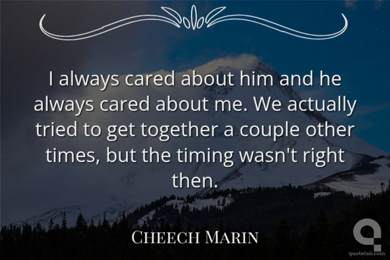 I always cared about him and he always cared about me. We actually tried to get together a couple other times, but the timing wasn't right then.