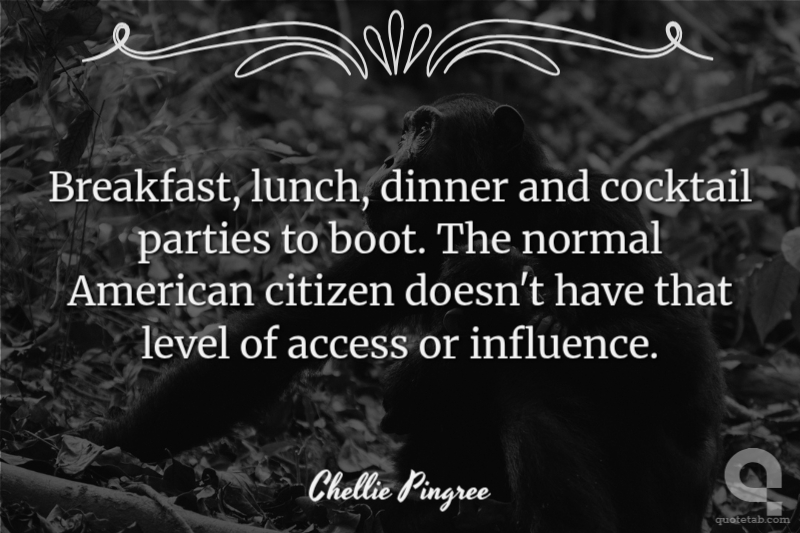 Breakfast, lunch, dinner and cocktail parties to boot. The normal American citizen doesn't have that level of access or influence.