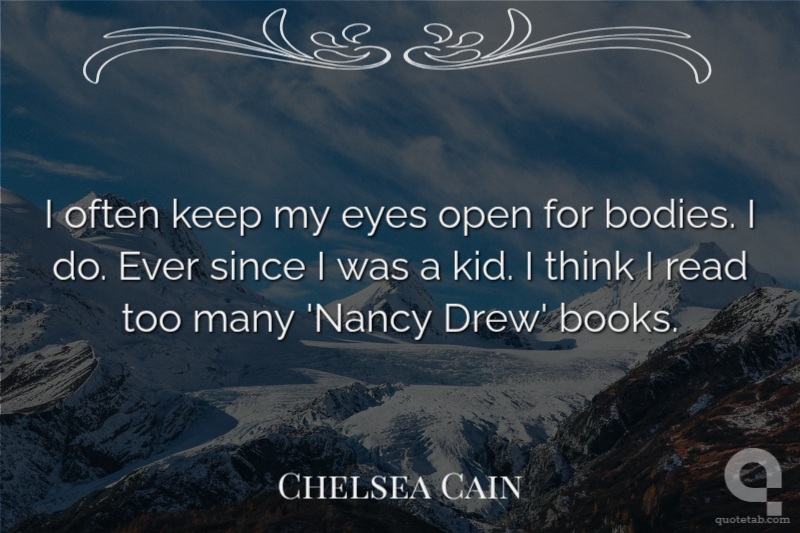 I often keep my eyes open for bodies. I do. Ever since I was a kid. I think I read too many 'Nancy Drew' books.