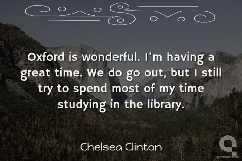 Oxford is wonderful. I'm having a great time. We do go out, but I still try to spend most of my time studying in the library.