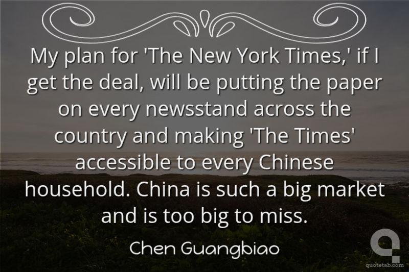 My plan for 'The New York Times,' if I get the deal, will be putting the paper on every newsstand across the country and making 'The Times' accessible to every Chinese household. China is such a big market and is too big to miss.