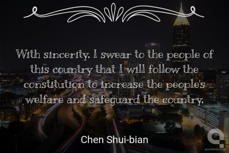 With sincerity, I swear to the people of this country that I will follow the constitution to increase the people's welfare and safeguard the country,