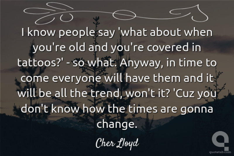 I know people say 'what about when you're old and you're covered in tattoos?' - so what. Anyway, in time to come everyone will have them and it will be all the trend, won't it? 'Cuz you don't know how the times are gonna change.