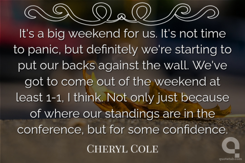 It's a big weekend for us. It's not time to panic, but definitely we're starting to put our backs against the wall. We've got to come out of the weekend at least 1-1, I think. Not only just because of where our standings are in the conference, but for some confidence.
