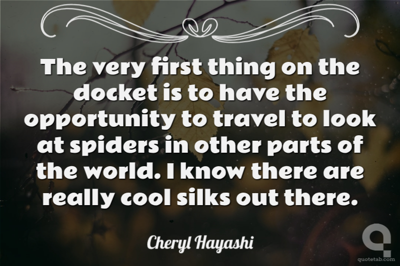 The very first thing on the docket is to have the opportunity to travel to look at spiders in other parts of the world. I know there are really cool silks out there.