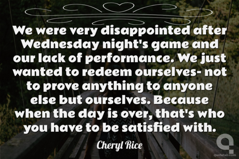 We were very disappointed after Wednesday night's game and our lack of performance. We just wanted to redeem ourselves- not to prove anything to anyone else but ourselves. Because when the day is over, that's who you have to be satisfied with.