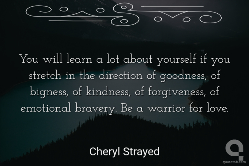 You will learn a lot about yourself if you stretch in the direction of goodness, of bigness, of kindness, of forgiveness, of emotional bravery. Be a warrior for love.