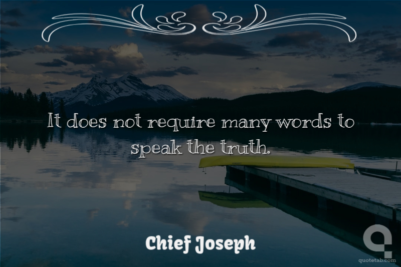 I am tired of talk that comes to nothing It makes my heart sick when I remember all the good words and all the broken promises. There has been too much talking by men who had no right to talk. It does not require many words to speak the truth.