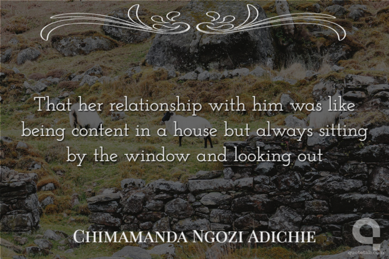 That her relationship with him was like being content in a house but always sitting by the window and looking out