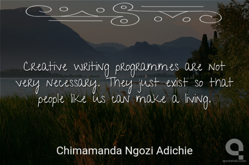Creative writing programmes are not very necessary. They just exist so that people like us can make a living.