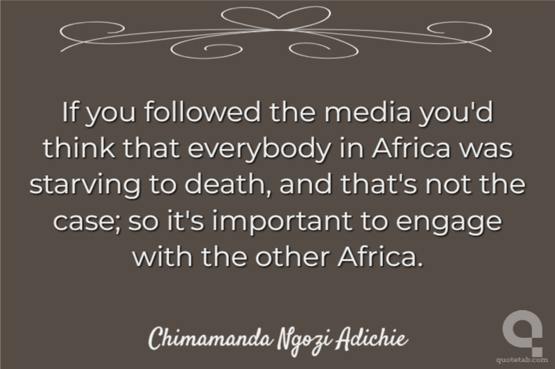 If you followed the media you'd think that everybody in Africa was starving to death, and that's not the case; so it's important to engage with the other Africa.
