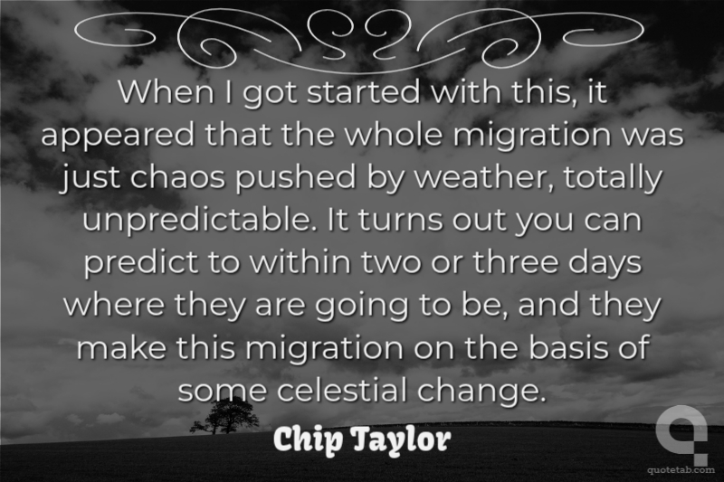 When I got started with this, it appeared that the whole migration was just chaos pushed by weather, totally unpredictable. It turns out you can predict to within two or three days where they are going to be, and they make this migration on the basis of some celestial change.