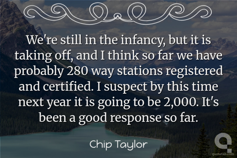 We're still in the infancy, but it is taking off, and I think so far we have probably 280 way stations registered and certified. I suspect by this time next year it is going to be 2,000. It's been a good response so far.