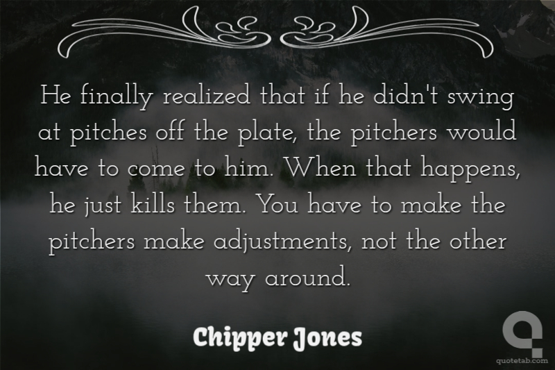 He finally realized that if he didn't swing at pitches off the plate, the pitchers would have to come to him. When that happens, he just kills them. You have to make the pitchers make adjustments, not the other way around.