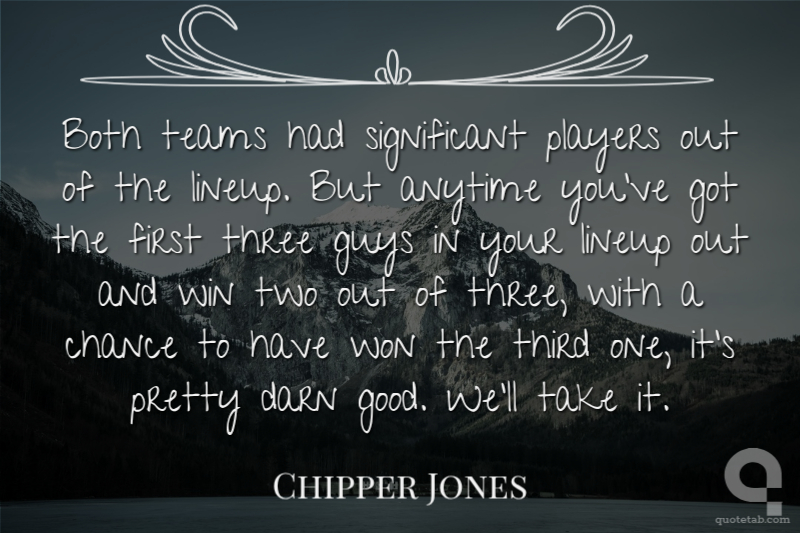 Both teams had significant players out of the lineup. But anytime you've got the first three guys in your lineup out and win two out of three, with a chance to have won the third one, it's pretty darn good. We'll take it.