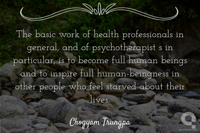 The basic work of health professionals in general, and of psychotherapist s in particular, is to become full human beings and to inspire full human-beingness in other people who feel starved about their lives.