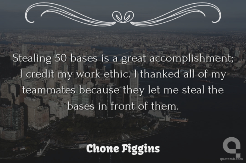 Stealing 50 bases is a great accomplishment; I credit my work ethic. I thanked all of my teammates because they let me steal the bases in front of them.