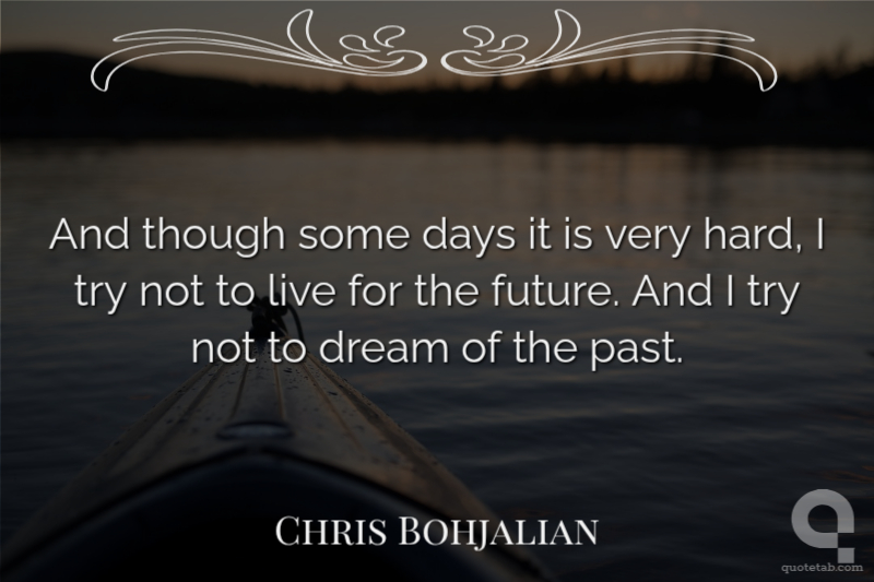 And though some days it is very hard, I try not to live for the future. And I try not to dream of the past.