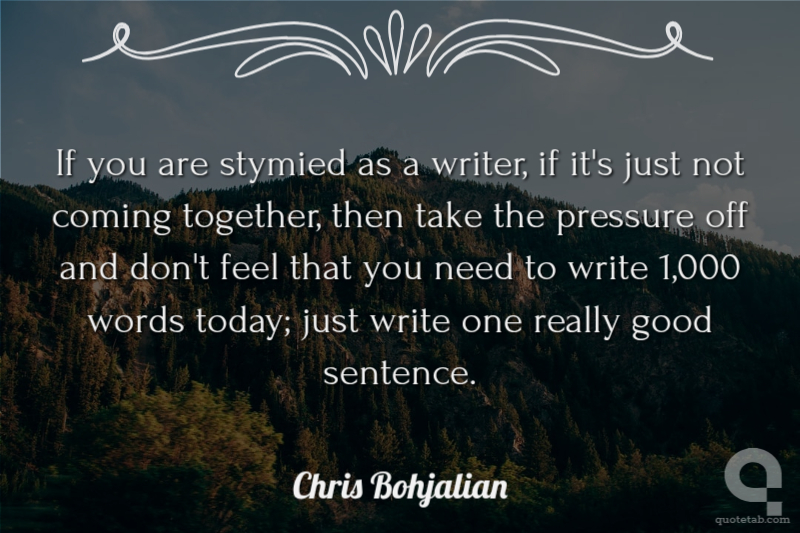 If you are stymied as a writer, if it's just not coming together, then take the pressure off and don't feel that you need to write 1,000 words today; just write one really good sentence.