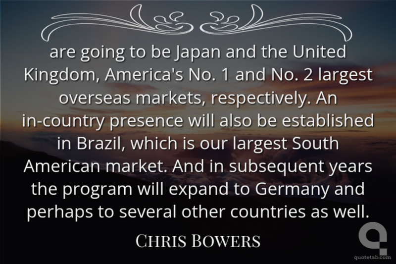 are going to be Japan and the United Kingdom, America's No. 1 and No. 2 largest overseas markets, respectively. An in-country presence will also be established in Brazil, which is our largest South American market. And in subsequent years the program will expand to Germany and perhaps to several other countries as well.