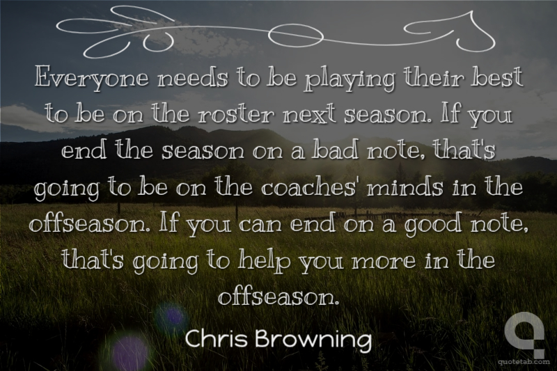 Everyone needs to be playing their best to be on the roster next season. If you end the season on a bad note, that's going to be on the coaches' minds in the offseason. If you can end on a good note, that's going to help you more in the offseason.