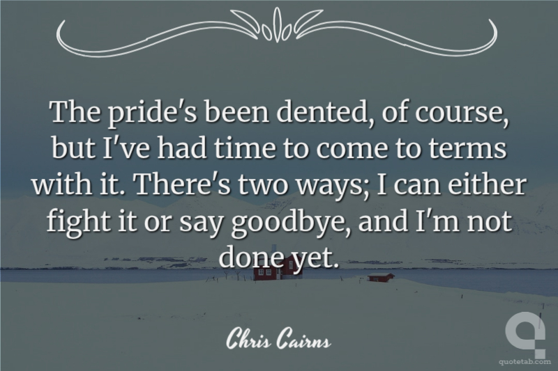 The pride's been dented, of course, but I've had time to come to terms with it. There's two ways; I can either fight it or say goodbye, and I'm not done yet.