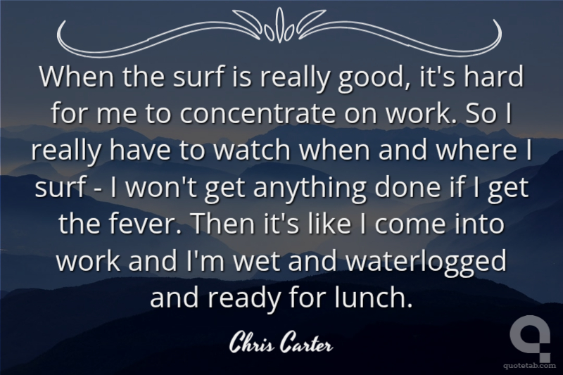 When the surf is really good, it's hard for me to concentrate on work. So I really have to watch when and where I surf - I won't get anything done if I get the fever. Then it's like I come into work and I'm wet and waterlogged and ready for lunch.