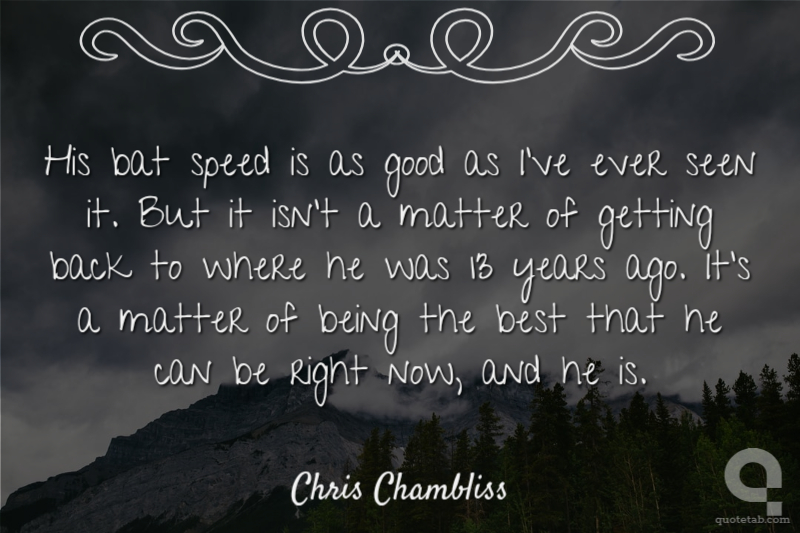 His bat speed is as good as I've ever seen it. But it isn't a matter of getting back to where he was 13 years ago. It's a matter of being the best that he can be right now, and he is.