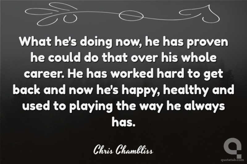 What he's doing now, he has proven he could do that over his whole career. He has worked hard to get back and now he's happy, healthy and used to playing the way he always has.