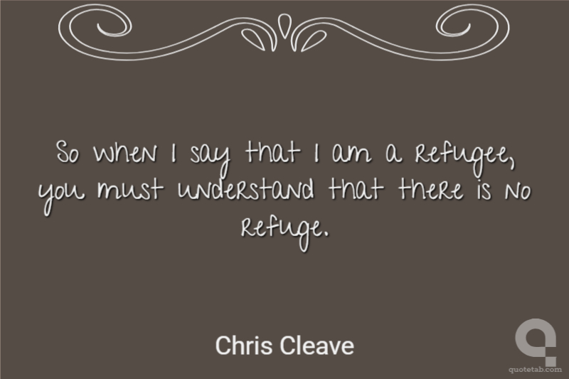 So when I say that I am a refugee, you must understand that there is no refuge.