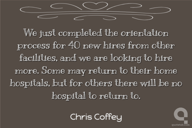 We just completed the orientation process for 40 new hires from other facilities, and we are looking to hire more. Some may return to their home hospitals, but for others there will be no hospital to return to.
