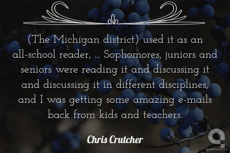 (The Michigan district) used it as an all-school reader, ... Sophomores, juniors and seniors were reading it and discussing it and discussing it in different disciplines, and I was getting some amazing e-mails back from kids and teachers.